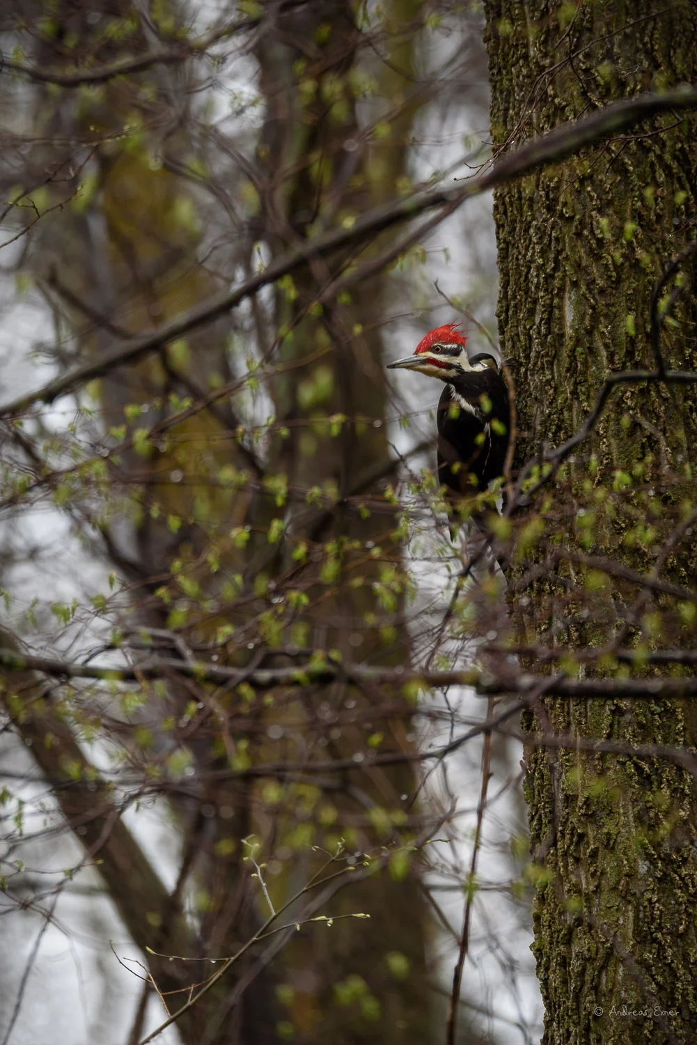 I know, I just showed you a picture of a Pileated Woodpecker a few days ago. Well, this one was made yesterday evening from our front porch. This male Pileated Woodpecker was about to fly over to a dead oak tree trunk only a few feet away. He has hammered quite a few holes into this tree already. The old oak was about to die three years ago. It lost most of its leaves and there was an imminent danger that it would fall onto the house during a storm. We had to make a decision. Instead of cutting down the whole tree we ask a tree expert to cut off only all the branches. Well, we have a dead big oak tree trunk standing at the edge of the woods in our front yard and some neighbors may think we are a little coo-coo, but we are very proud of it! It became a shelter for the squirrels at times, and at least six of the seven woodpecker species we have here have been seen on that tree. The Pileated Woodpecker is a permanent resident in the woods on our bluffs and down in the Little Maquoketa River Valley. We hear them all the time, especially in spring, but seeing them and making a photo is a different story. They do not come to the suet feeders, as other woodpeckers do and any sighting is an event, at least for us. Today’s photo is my proof that having a dead oak tree trunk in the front yard can be useful, even if some landscape designers may not agree, and some neighbors may turn up their nose 😉. I think you get my line of thoughts, creating habitats for our wildlife, even if they are tiny, can be very important at times when habitat loss is still prevailing, due to a life style in our society where economical expansion has most of the time the priority over everything else.