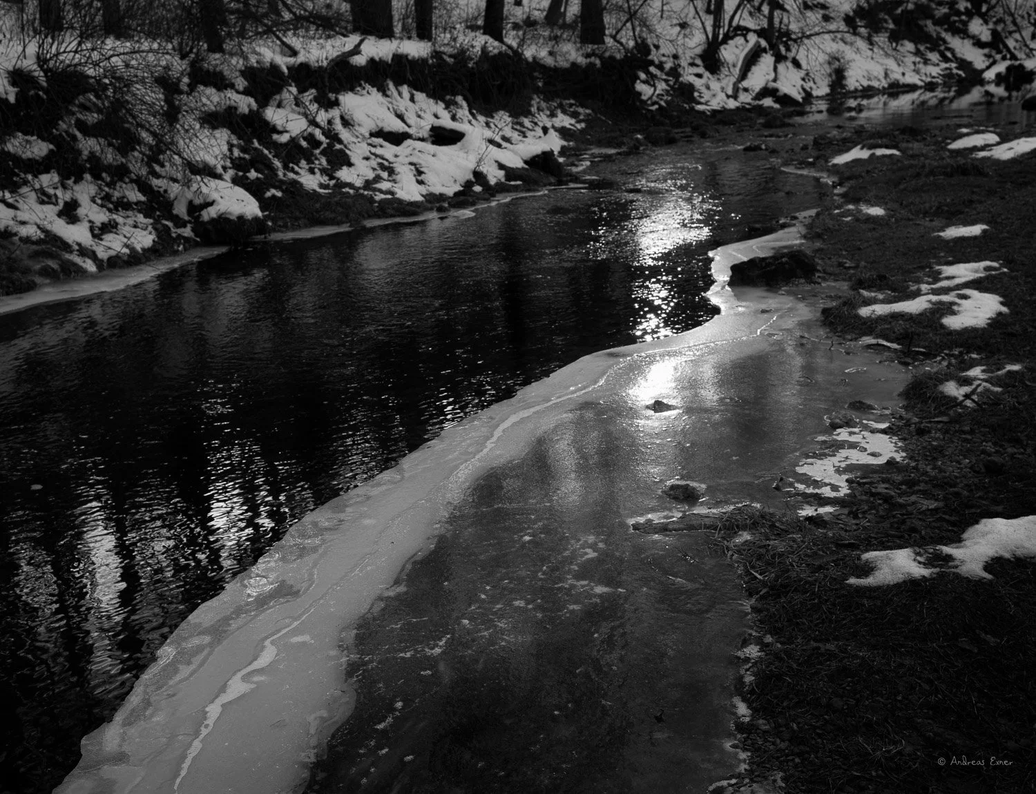 I wanted to challenge myself today and took only one lens with me, my old, but still fantastic Carl Zeiss Distagon T* 2/35 ZF. It’s has only manual focus and I admit I have neglected this lens recently and didn’t use it very often. The second challenge I put in place was to shoot only in black and white mode, which requires a different approach to visualize the image in the head before the shutter release button is pressed. I felt it was a good choice for catching the mood I found along the river on this shortest day of the year, with no other people around. What do you think?