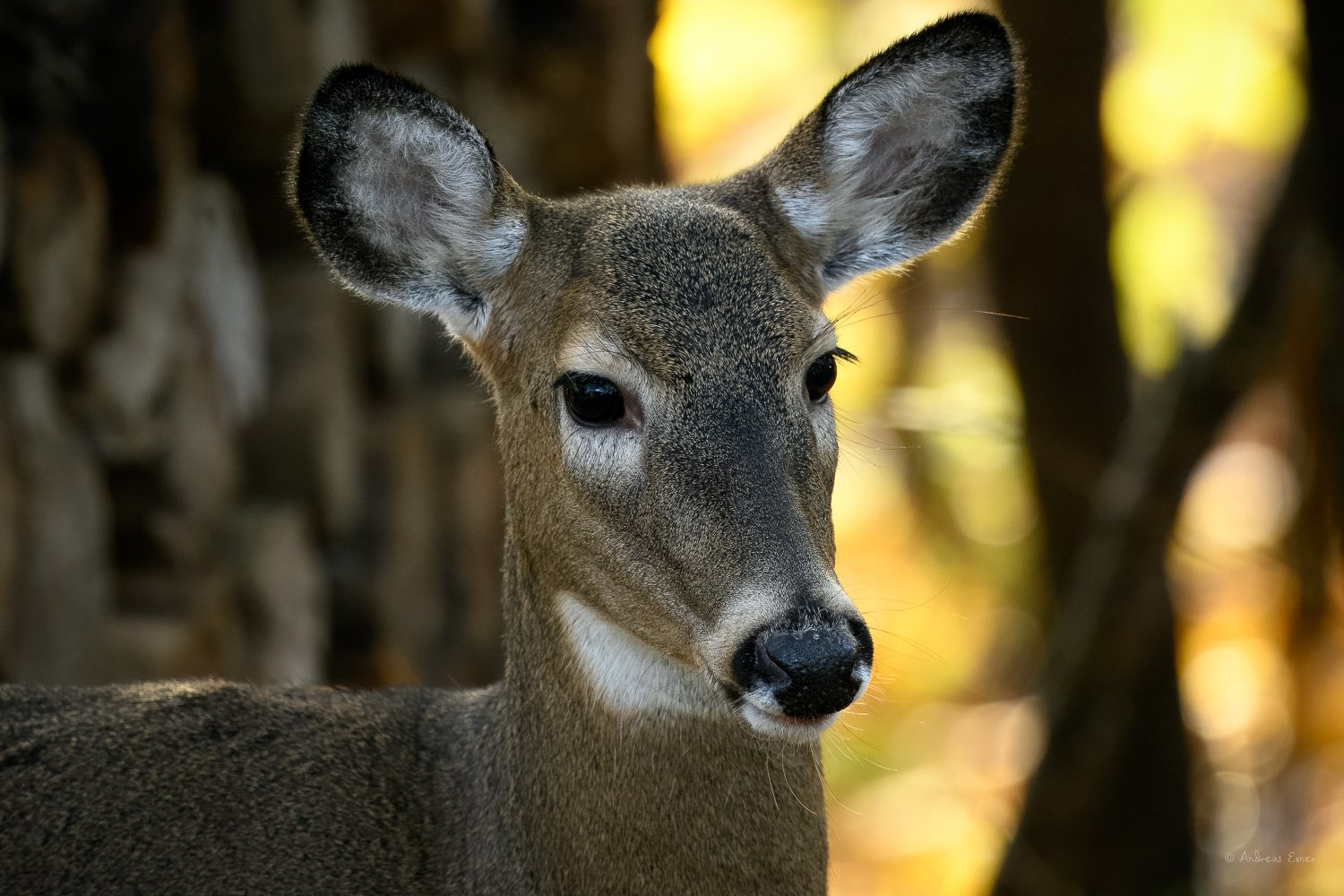 I have not seen any buck of a White-tailed Deer here in our woods this fall season so far, but does and fawns that were born earlier in spring love the safety of our neighborhood and stay in the area all year long.