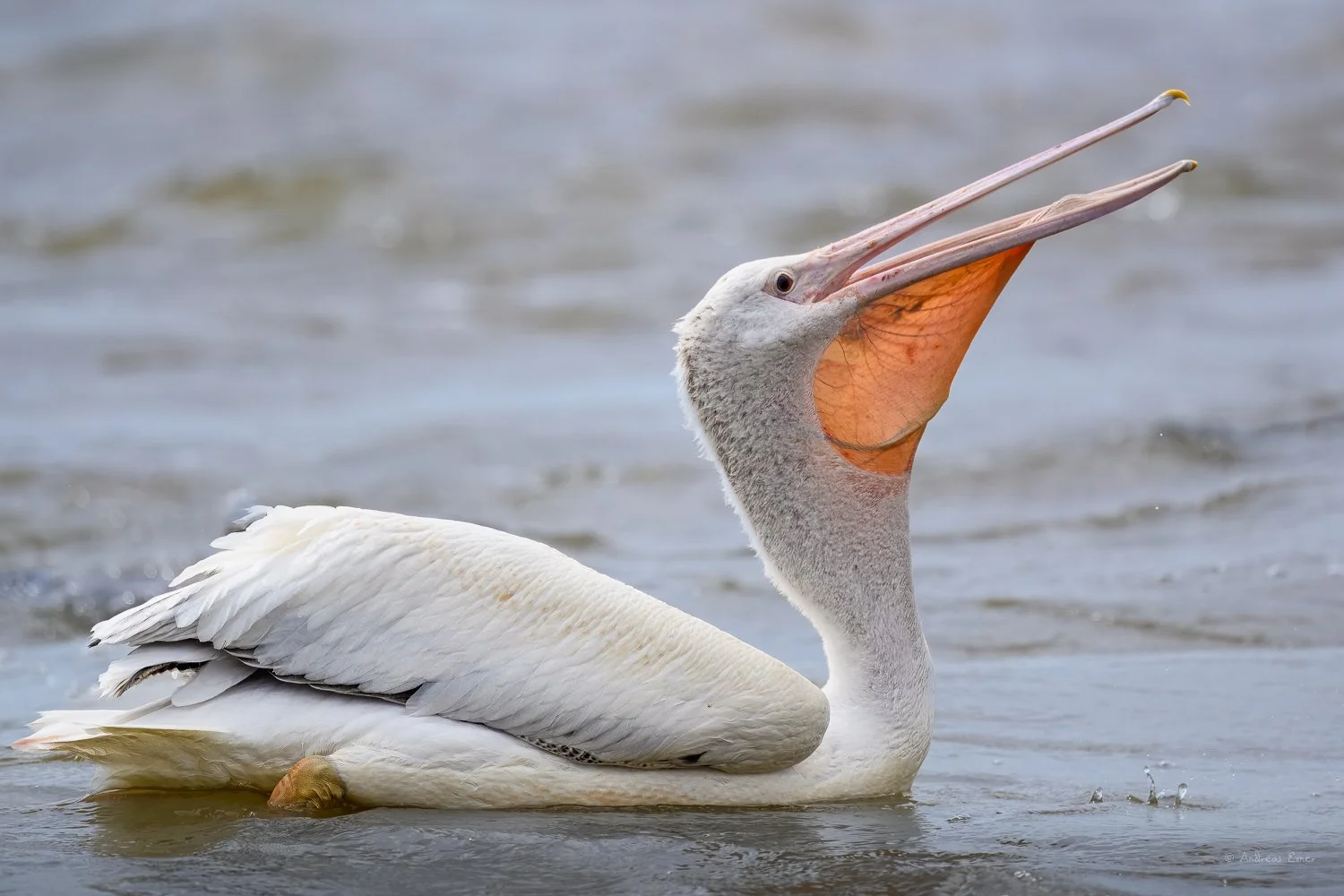 Juvenile American White Pelican, Mississippi River, dam #11, O’Leary Lake, Wisconsin. I love how the translucency of the bill pouch stood out. Only two juveniles hunted for fish side by side but the rest of the squadron took a break over on the Iowa side of the river.